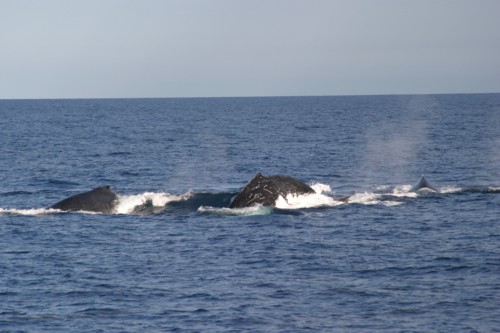 hvězdice a karety, máme foto. Pak na moři žraloci a vyskakující velryby - keporkak. Dnes