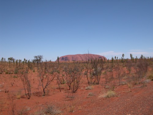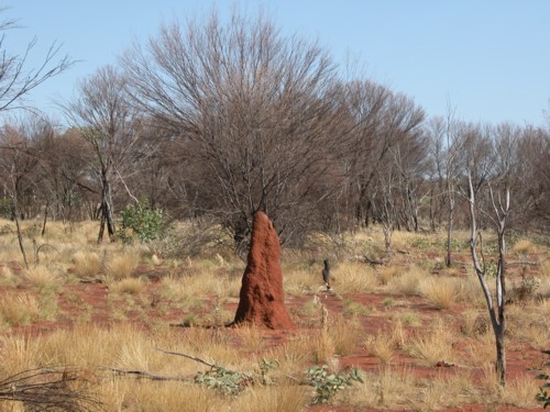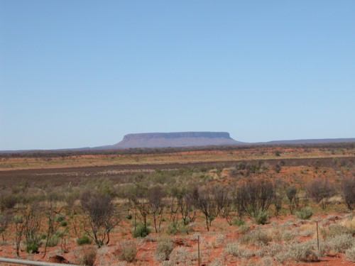 Další den jsme dosáhli geografického středu Austrálie, viděli jsme 60 m vysoký pískovcový