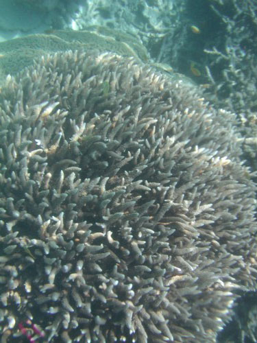 pláži korály a velké mušle, šnorchlování - pod vodou korály všech barev, ryby také, modré