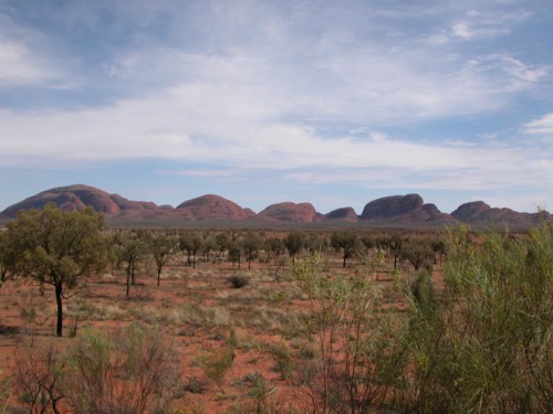 Stále čekáme na signál. Navštívili jsme bizardní skalnaté útvary Kata Tjuta. Pokračujeme na západ