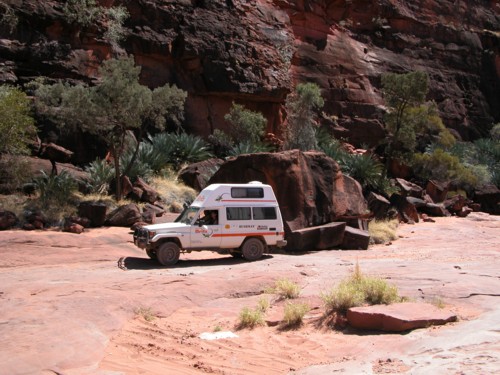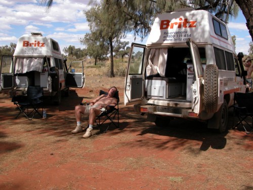 ve středu Austrálie. Tady servis vozů a 2 dny relax u bazénu pod palmami.