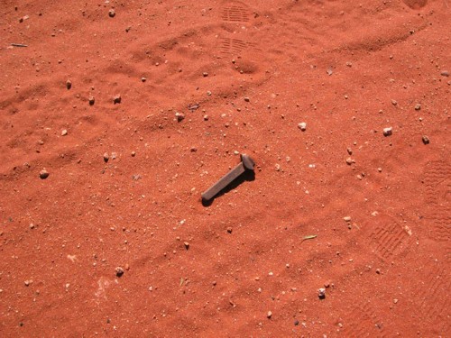 staré, bývalé Ghanské železnice, která spojovala sever a jih. Kované hřeby z rozpadlých pražců,