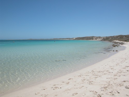 v Shark Bay. Pak přesun do Monkey Mia, kde budeme ráno krmit v moři delfíny. Posílám pozdrav