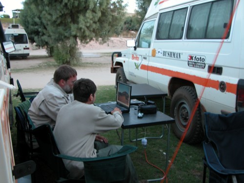 na baru popíjíme s místňákama pivo. Dopoledne 200 km poslední prachovka, na nichž fotíme