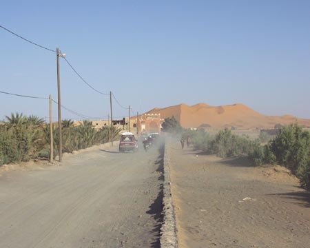 plošině nad oázou Meski. A pak už konečně náš hlavní cíl, který loni spíše pokořil nás. Jedeme směr Erg Chebbi. Dorážíme sem kolem čtvrté a jedeme se ubytovat k našemu příteli