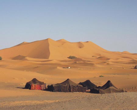 velbloudí obchodní karavany na svoji dalekou pouť pouští. V podvečer dojíždíme za Mhamid na duny skutečné Sahary, neboť tady si můžete sáhnout na písek největší pouště světa.