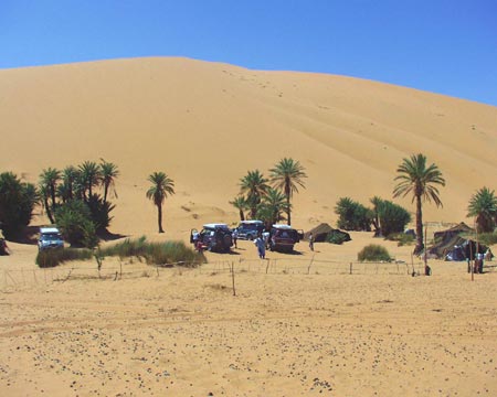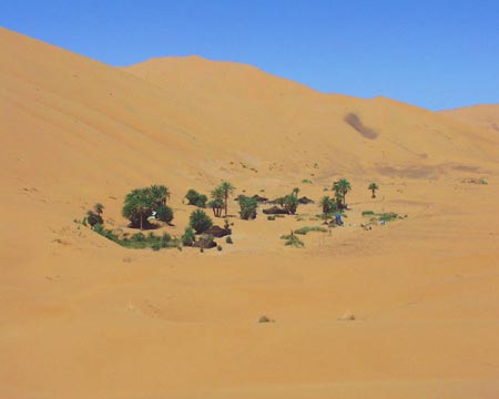 To, co bylo celé dopoledne, kdy jsme postupně zapadávali jeden po druhém naším snem, je skutečností - před námi je uprostřed dunu vytoužená oáza.