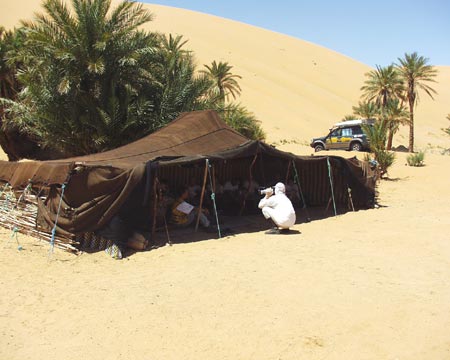 Všichni jsme uvítali stín tuarežských stanů, neboť dopoledne jsme při vyhrabávání našich vozů moc jejich klimatizace neužili.