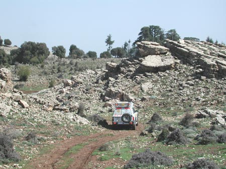 Dnes ráno jsme se přesunuli cedrovými háji na spojovací silnici do Errachidie. Cestou jsme si dali offroadovou vložku - takové
