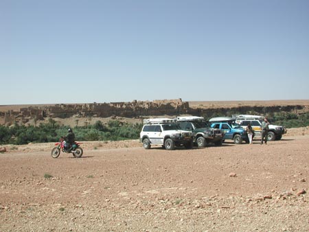 Po večerní "družbě" s pivem, slivovicí, tážinem a bubínky jsou z nás přátelé. Teď ještě prohlídnout starou Kasbu a vyrážíme na pouštní etapu Rallye Paris - Dakar.