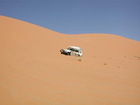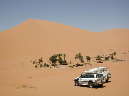 stovkou po kamenné poušti, pak přijde oáza a vzápětí duny - prostě paráda. Mimochodem, těch