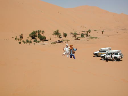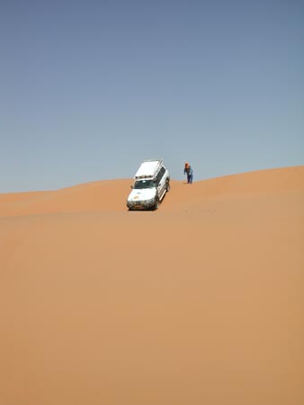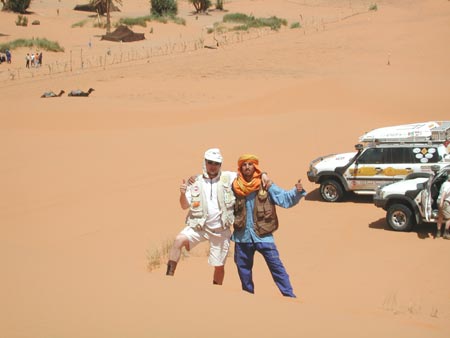 Náš starý známý nás provází i letos - jmenuje se Imbarek a je to třiadvacetiletý kluk, který se sám naučil anglicky, italsky a španělsky. A pohybuje se v dunách jako doma - půjčil jsem mu i svoje auto - fakt umí.