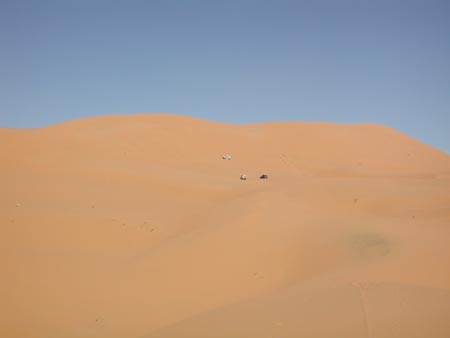 111 m vysoká duna je výzva, ale až nahoru to nejde. Ke slovu přichází i sand plechy. Vzkaz všem: BOHUŽEL FAKT NESTÍHÁM - další fotky dávám k textu z deníku.