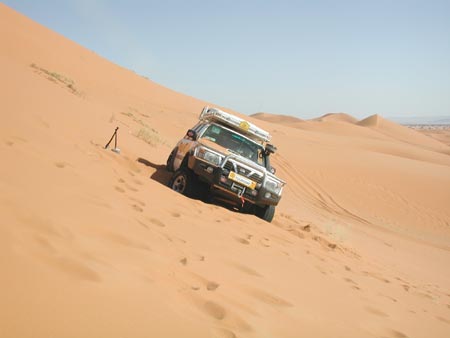 dobrodružství nás čeká při cestě přes duny Čegaga, kde přišel ke slovu i naviják. Před