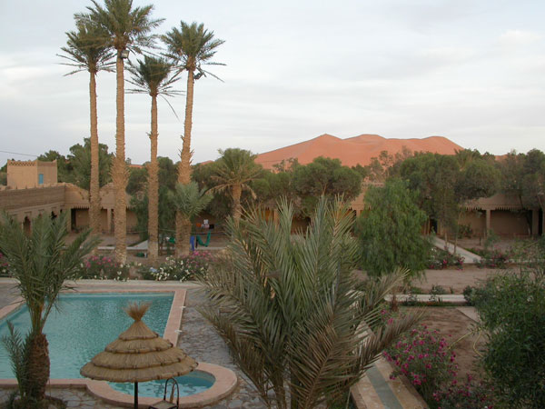 10 hod. - Tak jsme zpátky v kasbě u Hasana, relaxujeme u bazénu. Ráno jsme vyjeli z Ouzzini už v sedm, abychom se po cestě neuvařili.