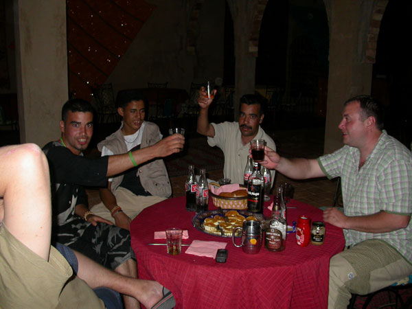 vedru kolem 43°C ve stínu. Když jsme dorazili na místo, kluci z hotelu nám udělali výborný oběd - marocký salát a tazin. Říkali, že dnes je obzvlášť horko a že jsme STRONG MANNI.