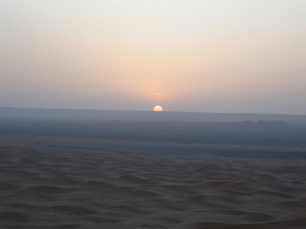to paráda! Kluci ještě spí, já teď ležím na hraně té nejvyšší duny na čtyřkolce a čekám na východ slunce. V sedm se podává u Hasana snídaně a v osm vyrazíme na dvoudenní trip