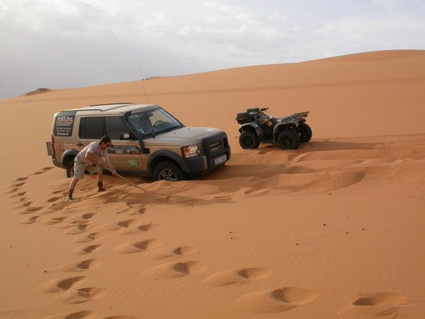 plánovaný pokus o přejezd Erg Chebbi, tedy těch nejvyšších dun (až 112 m) z jihu na sever. Podmínky jsou ideální, po včerejší písečné bouři