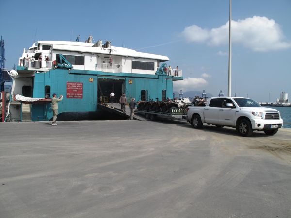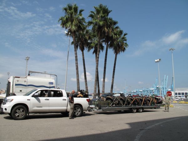 15 hod. - Tak jsme po 33 hodinách a 2860 km na Gibraltaru, sestava je 2x Toyota Tundra a 6 ATV - 2x Renegade, 2x TGB a 2x Grizzly. V 16 hod. nám jede loď, zla 35 min. Jsme v Africe, pak už "jen" 850 km