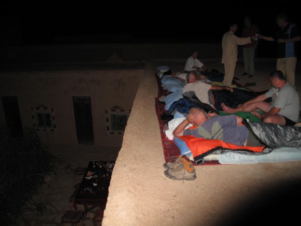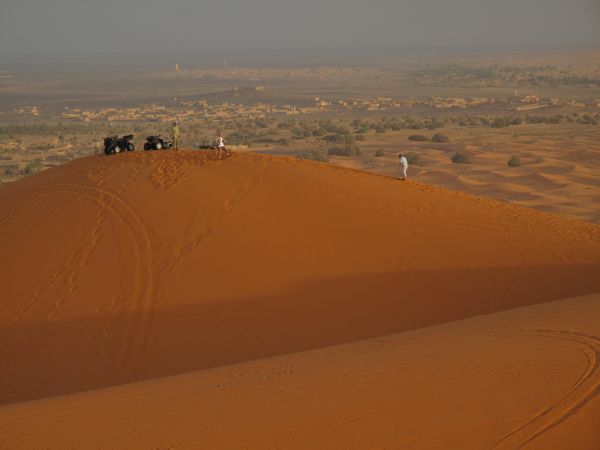 17 hod. - Právě jsme se vrátili z dvoudenního tripu z dun Erg Ouzzina, kde jsme přespali na střeše kasby, neboť ani přes noc nepadla teplota pod 25°C. Už příjezd byl akční, jeden defekt