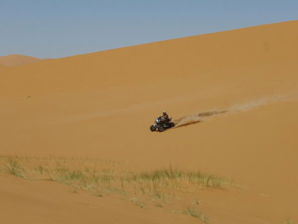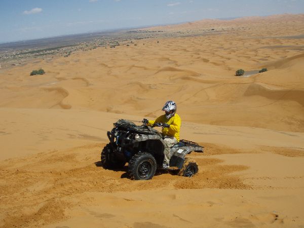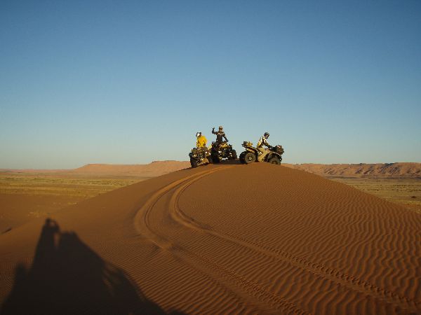 17.30 hod. - Život je změna... Teď sedím v Touaregu a píšu vám info z té nejvyšší duny na Erg Chebbi. Odpoledne jsme zas s ATV vyrazili do d un. Kluci se do toho dostávaj