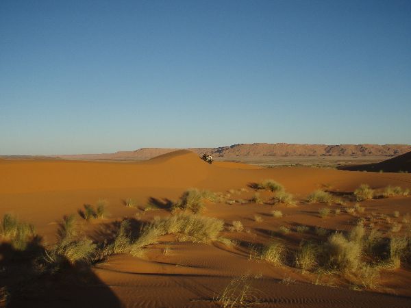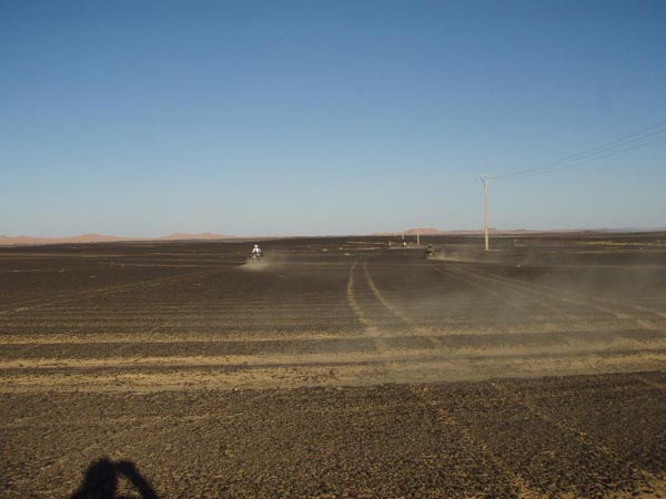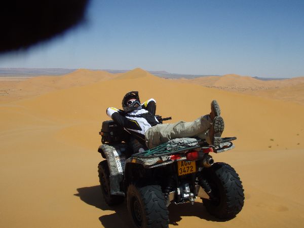 Za Hassanem je jezerou, jak v zimě. Ale říkal, že se to pročistilo a začnou pařáky, měl pravdu - ráno bez mráčků! Začíná nám čtyřkolkářský pobyt v písečném ráji!!! Konečný stav