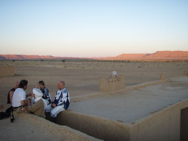 19.00 hod. - Tak jsme po celodenním ježdění usedli ke stolu a čekáme na místní specialitu tajin. Vyjeli jsme ráno na jižní cíp dun a pak jsme dali přejezd napříč na sever.