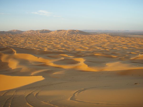 Nebo se nechat vtáhnout do plavby ve vlnách písečného moře - prostě paráda! Teď relax u bazénu, přes poledne se nedají "číst" lomy dun a je úmorné horko. Vyrazíme až