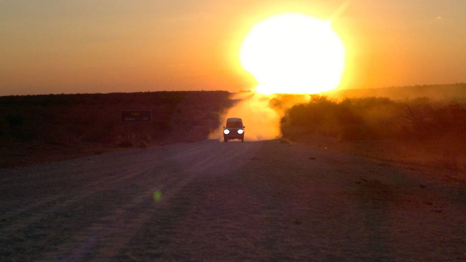 20:00 hod. - Právě táboříme v terosrtu NAMUTONI, v NP Etosha. Dnes jen přesun 600 km, z toho 420 km asfalt. U napajedla jen několik žiraf a hyena, snad zítra budeme mít víc štěstí.