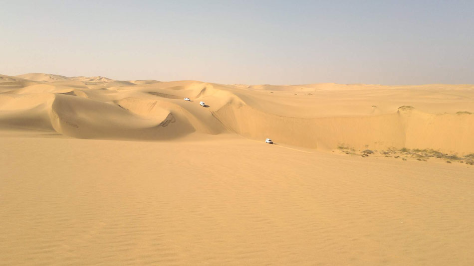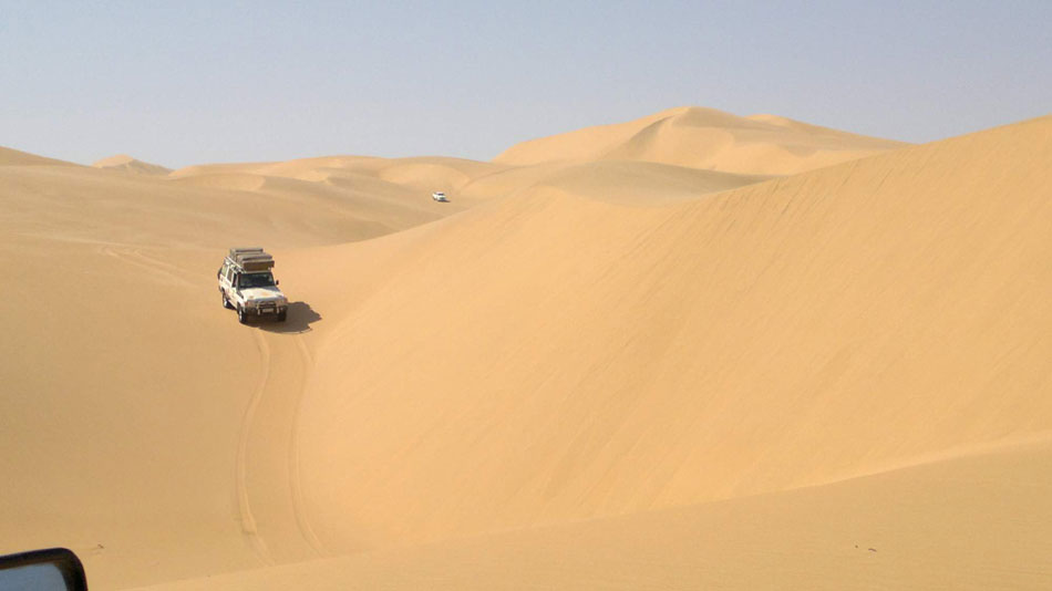 20:45 hod. - Právě táboíme, dnes dlouhý den, zakončený přípitkem na zdárný konec výpravy na hraně duny nad Death Valley. Zítra už jen přesun 300 km do Windhoeku. Všechny posádky jsou OK.