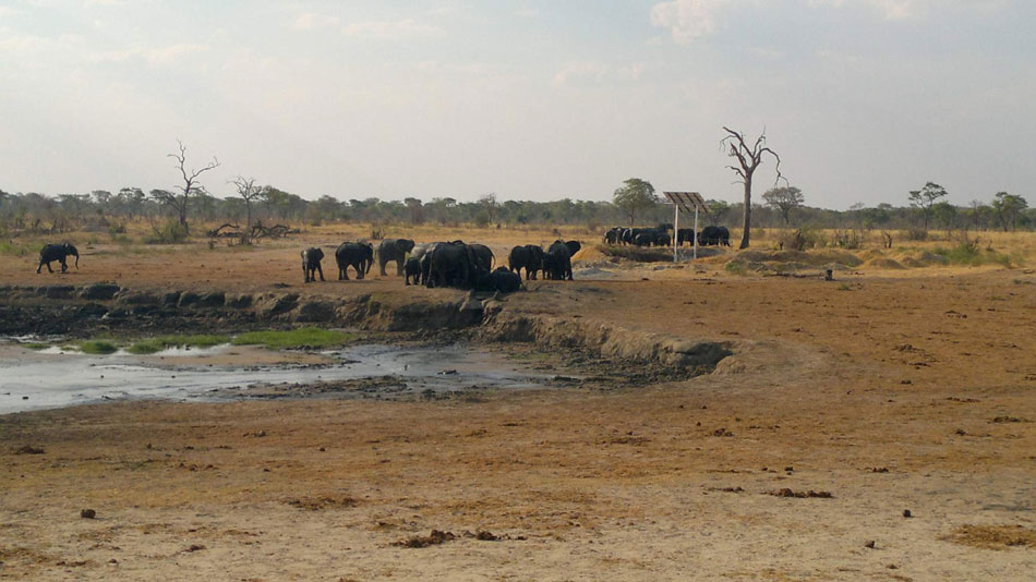 22:00 hod. - Dnes jsme společně projeli většinu napajedel NP Etosha, viděli jsme 4 lvice, 24 slonů, hyenu, šakaly, žirafy, pakoně, zebry, desítky různých antilop. Teď večer 6 nosorožců. Zdar Náča