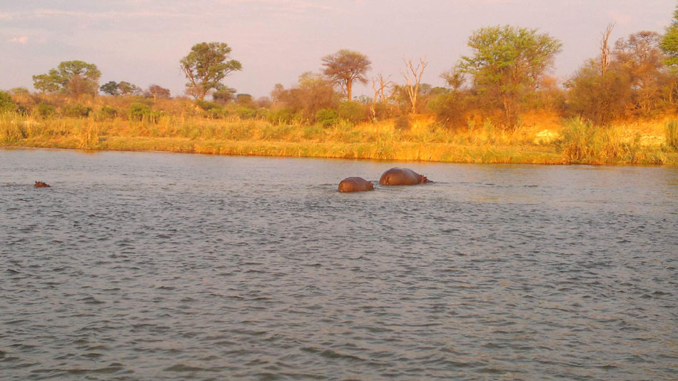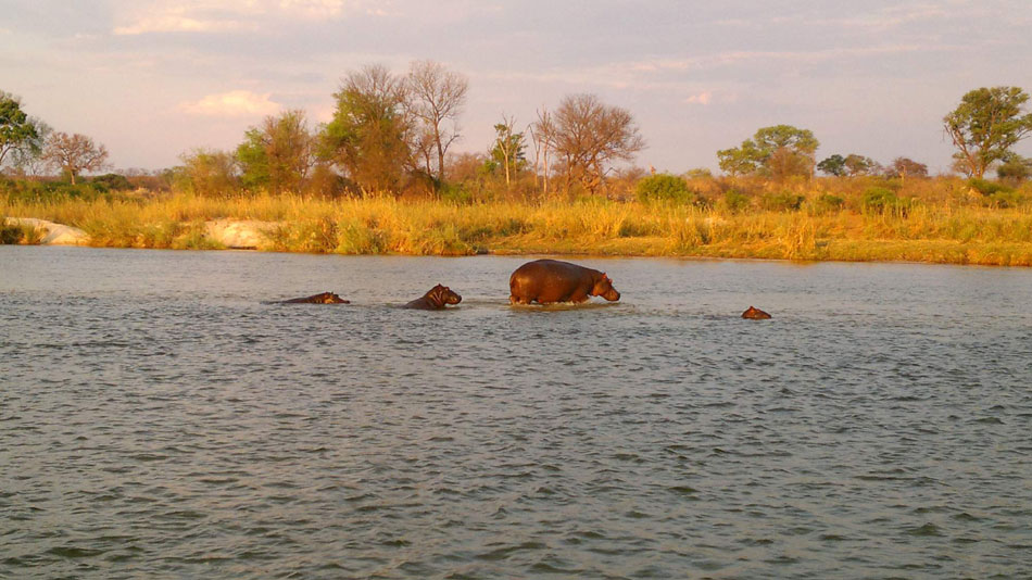 10:00 hod. - Včera v podvečer jsme při vyjížďce na loďce viděli tři hroší rodinky, jedna dokonce uprostřed řeky přecházela vyvýšenou kosu pod vodou - bylo to úžasné, jak se vynořili!