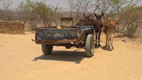11:00 hod. - Tak jsme v Tsumkwe, v Bush Landu, jedeme do vesnice Křováků, pak do NP Khaudum. Zatím dvě pneu. Náča