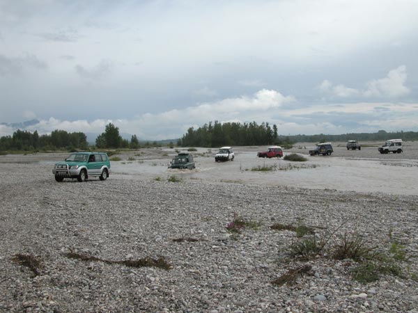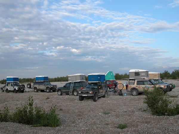 Do řeky jsme najeli o 20 km níž, kde je sice hodně nových ramen, ale méně vody. Večer dorazily ještě tři vozy, tak je nás celkem 11. Všichni jsou OK. Zdar Náča