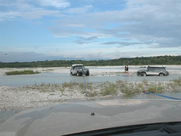 v tekutém písku dva Patroly a záchrana trvala 2 hodiny. Prostě maximálně akční den. Teď vegetíme u řeky, za chvilku přijde ke slovu i kytara.