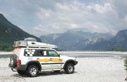 možnosti našich vozů - odpoledne se přidal déšť. Dnes první den slunečno, právě vegetíme u