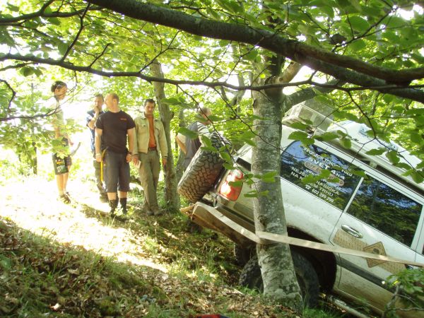 18.30 hod. - Dnes ráno jsme se už probudil v plném počtu 11 teréňáků, 2 auta dorazila o půlnoci a 2 k ránu. Přijel i místní lesník, který nám tvrdil, že cesty dál nevedou, ale že nám ukáže