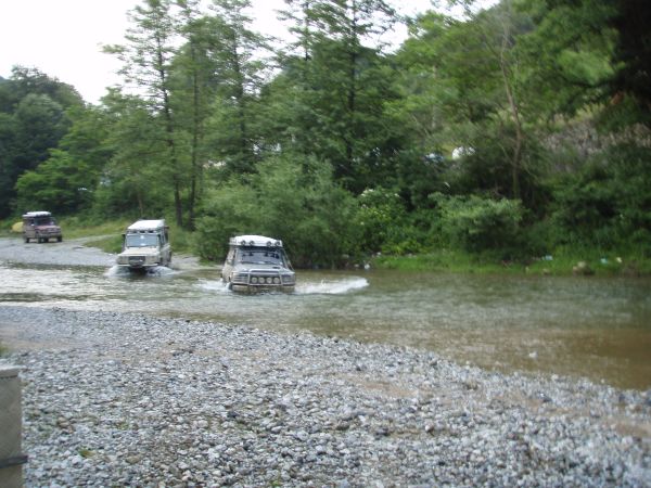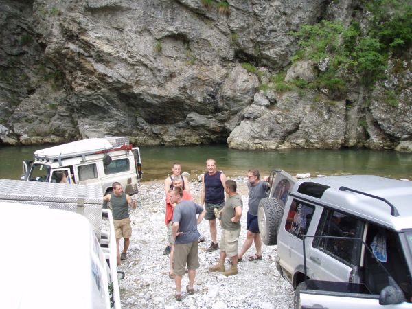 11.30 hod. - Teda s Háčkařema se člověk nenudí. Sjeli jsme k řece, aby jsme opláchli podvozky a kluci utopili jednu H1. Vyndáváme žhavičky a doufáme, že vyházíme vodu a motor půjde. Zdar Náča