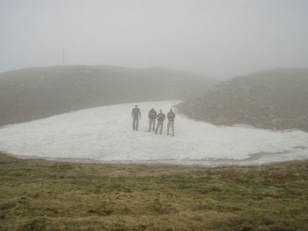 11.45 hod. - Tak jsme na meteo stanici na vrcholu Tarcu ve výšce 2190 m. Je polojasno, ale hřebeny nejsou v mracích, tak pokračujeme na východ neprojetou trasou. Všichni z H1ček