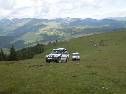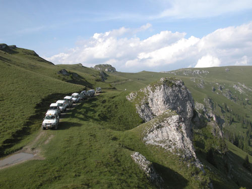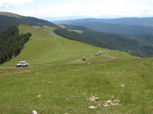 16 hod. - Včera nádherný off-road po hřebenech Transylvánských Alp ve výšce 2000 m. Nejvyšší