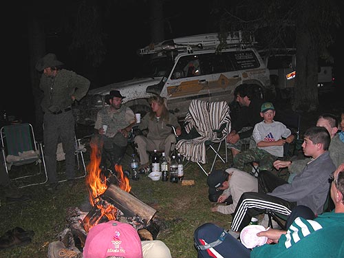 20 hod. - Právě sedíme u táboráku pod Fagarašem. Máme za sebou přesun 270 km s návštěvou