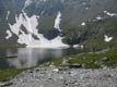 vítr, tak je chladno 14°C. Právě jsme dobyli vrchol Omul 1935 m. Teď sjíždíme do údolí k potoku,