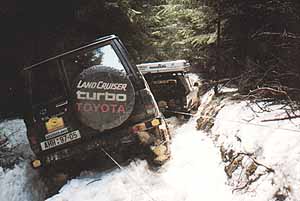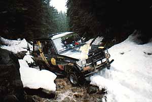 Transylvánie - příprava(1.4. - 10.4.1998)Naš přípravný tým který se skládal tentokrát z šesti členů, jenž znáte z Poháru Off Road, jmenovitě Dušan a Robert Randýskovi, Ondra Parez s Michalem Smidou, Jirka Chramosil a Michal Pánek, se vydal po stopách Drákuly do Východních Karpat. Zde chceme jednak připravit itinerář pro příznivce expedic, kteří se s námi vydají v květnu na dobrodružnou cestu, ale hlavně najít místo, kde stál hrad snad nejslavnějšího upíra všech dob, kterého si pro svou předlohu vybral spisovatel Bram Stoker. Hrad postavil Drákulův skutečný předek, údajný otec, kníže Vlad Drácul, který žil asi 1431-76 Jméno Vlad Napichovač mu vyneslo to, že za dob své krutovlády nechal umučit, popravit nebo napíchnout na kůl asi 40.000. Ten rytíř Dračího řádu byl krutý tyran, jenž naháněl hrůzu nejen svým poddaným, ale i nepřátelům, které po jeho vítězné bitvě bez milosti nechal napíchnout na kůly. Naše cesta začala 1.4. odjezdem z Prahy s vozy Toyota Hilux 2,4 TD v expediční úpravě a spolu s krátkou Toyotou 7O 3,0 TD přes Brno , kde se k nám připojila posádka se soutěžní Suzukou Samurai 1,3 , která se pravidělně zúčastňuje Off Road soutěží .Pokračovali jsme dále na Bratislavu , Komárno , Budapešť pak směr Oradea . Přibližně 30 km před Maďarsko-Rumunskou hranicí jsme přenocovali ve stanech , pro které bylo velice obtížné najít alespoň pár stromů mezi nekonečnými kukuřičnými poli. Ráno jsme vyrazili přes hranice do Oradei a dále na Cluj , která nás překvapila na rumunské poměry svou rozlehlostí a kulturou. Poslední větší město pro několik dalších dnů byla Bistrita, z níž nás zavedl průsmyk až na repliku Drakulova hradu Hotel Dracula Castl , kde jsme ve stylovém prostředí dobře povečeřeli a naposled využili vymožeností civilizace , které nám budou pro příští dny scházet. Ráno nás přivítalo blankytně modrou oblohou a my se svými vozy vyjeli na místo , kde podle místních domorodců stál skutečný hrad obávaného upíra . Že cesta nebude zcela jednoduchá nám dala najevo provlhlá půda polí, do nichž se naše dvě těžké Toyoty bezmocně bořily , ovšem nás tato skutečnost nikterak nepřekvapila a za 10 minut byly všechny čtyři pneumatiky obou vozů obuty do řetězů Weisedfeld od firmy ITACO, které se nám už nejednou osvědčily a pokračovalo se dál. Suzuka pro svou muší váhu zdolávala bahno bez problémů a i Toyoty diky řetězům jedou stále kupředu a nezastaví je ani příkrov sněhu pod kopcem, kde v dávných časech stál Drakulův hrad. Že jsme na správném místě nám podtvrdil místní bača , který si zdatně poradil i s naší skupinovou fotografií u dřevěného kříže , který chraní prokletou zem před návratem netvora, jehož jistě do dnešních dnů v myslích místních domorodců Drakula představuje . Na místě samém bohužel nejsou nijak zvlášť patrné znaky jakékoliv stavby , ale musíme brát v úvahu , že hrad byl postaven někdy ve 13. století a samotný příběh Stokera se odehrává roku 1897 , kdy hrad už zřejmě vůbec nestál , neboť v jeho ilustraci připomínají nápadně hrad Bran , který se nachází v Západních Karpatech které navštívíme v černu a srpnu letošního roku . Po krátké prohlídce místa , jehož poloha je navždy pomocí GPS , které nám letos pomáhá při sestavování itineráře zapsáno jako Drákulův hrad ve výšce 1362 odjíždíme východním směrem . Srdce každého ofrouďáka poskočí radostí při průjezdu úzkých úvozů, kde před námi projížděly pouze koňské povozy , které svážejí tolik potřebné dřevo - jediný zdroj tepla ve zdejších drsných zimách.Nakonec rádi v brodu zbavujeme obalená kola vozů bahna , které by nás zbytečně tížilo , neboť se přesouváme do vyšších oblastí kde podklad tvoří zbytky sněhu nebo led .Skutečně po několika kilometrech , kdy jsme opustili stavení, se lesní cesty mění v kluziště a my opět oceňujeme řetězy , které pomáhají vozům vpřed na klikatých cestách , později vyjíždíme na horské paseky, kde jsou prozatím opuštěné salaše , které se dají používat v tuto dobu k velice příjemnému přenocování , ale vzhledem k tomu , že GPS ohlašuje západ slunce až za 3 hodiny pokračujeme dál v cestě . Ke slovu přichází poprvé naviják , který pomáhá Suzuce, v jejímž vybavení bohužel řetězy schází, ke zdolání prudkého stoupání po sněhové pokrývce.Největší překvapením dnešního dne je však medvěd , který se objevuje zhruba 100 metrů před námi , všichni vyskakujeme ven z vozu a chceme pořídit několik záběrů na kameru a fotoaparát , neboť setkání s medvěděm v divoké přírodě rozhodně nepatří mezi všední jevy , ovšem huňáč je jiného názoru a po krátkém zastavení se dává do utěku; možná jsou naše vozy první , které ve své životě viděl.Bohužel na lesním výseku kde jsme spatřili medvěda končí i cesta, po které jsme se vydali a tak se vracíme zpět na první salaš kde přenocujeme . Večer trávíme přípravou pokrmu na ohni u jehož praskajícího dřeva probíráme zážitky dnešního dne . Prní noc v horách máme rovněž možnost vyzkoušet střešní stan Maggiolina, který jsme pořídili na expediční Hilux a jehož kvality ve spojení s nezávislým topením Eberspracher jsme si nemohli po celou dobu vynachválit .Bohužel stan je určen pouze pro tři osoby a tak další tři se musí spokojit s horolezeckým stanem , který při podestlání slámou podle jejich mínění není taky k zahození. Další ráno nás vítá slunečným počasím a tak po krátké snídani a zabalení věcí vyrážíme, netušíc co nás dnešního dne čeká, na cestu . Dopoledne trávíme ježděním po klikatých 
