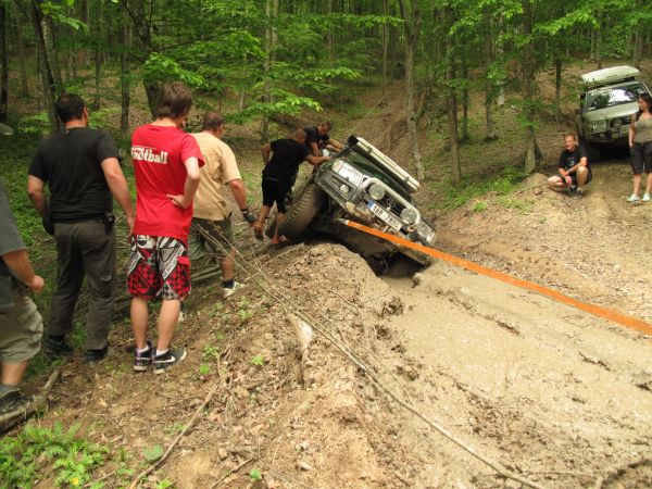19.45 hod. - Tak odpoledne jsme dali trošku offroad - sprchlo a my se vydali na lesní těžební cesty. Ke slovu přišly navijáky, kladky, kurty a nakonec i naše ruce,