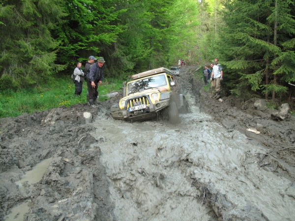 10 hod. - Tak offroadová pohoda přešla v boj o vytažení aut, poslední vyjelo z cesty kde byla asi 1 m dlouhá louže, na níž navazoval úsek asi 50 m, kde bylo 1 m