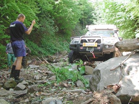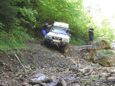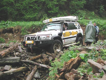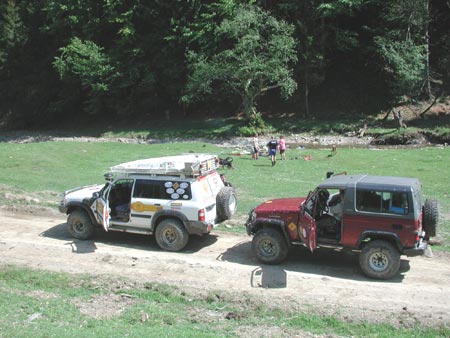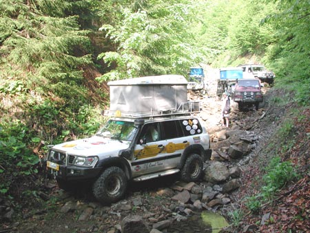 překvapením zjistili, že v údolí na cestě 10 metrů od nás probíhá od 13 h rallye. My
