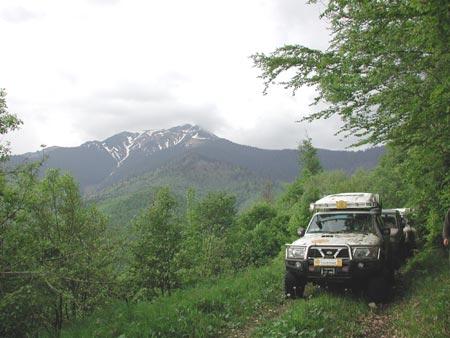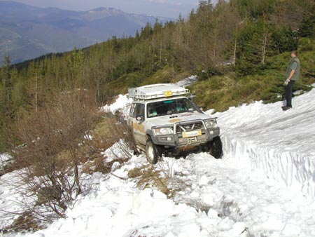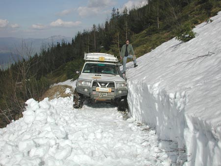 14.45 h - dnes poprvé hezky. Jsme na zasněžené cestě ve výšce 1652 m n.m. Jedeme pod vrchol