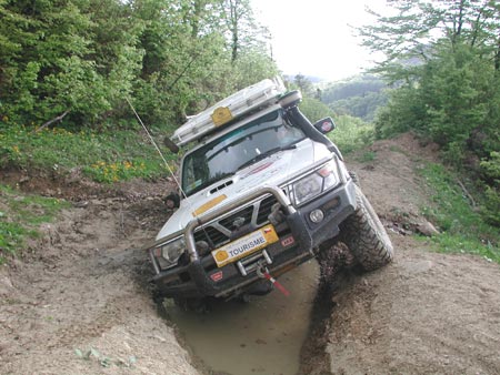 "Dědek" s Defendrem - na bahnité cestě se projevila jeho výhoda v nižší váze.