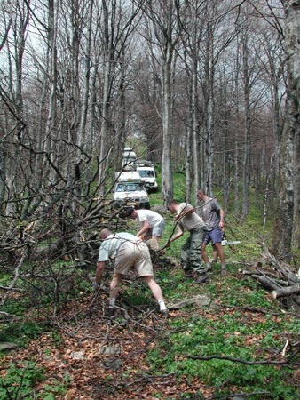 žene se k nám bouřka. Musíme prořezávat cestu, jde to pomalu. Náča