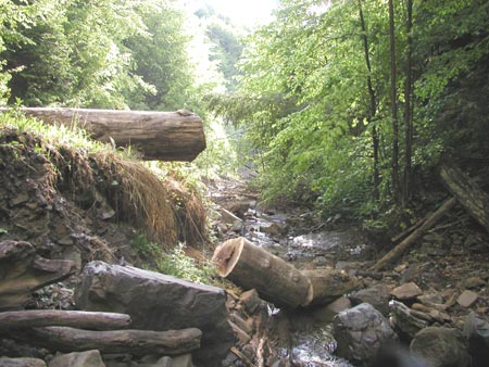 do potoka, kde jsme nuceni i nocovat. Celý den trvá než se proklestíme potokem, ale pak už nám počasí přeje a objevujeme spoustu zajímavých cest, které je nutné pospojovat. Poslední